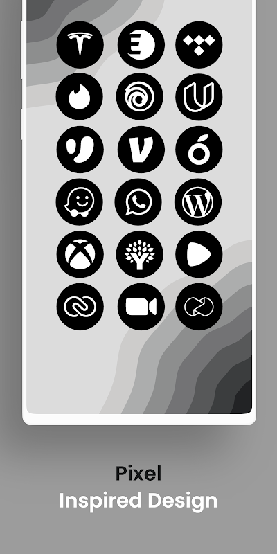 Passen Sie Ihren Startbildschirm mit diesem minimalen, flachen, kreisförmigen Symbolpaket in schwarzer Form an, das auf dem Google Android 14-Stil basiert, der auf den neuesten Pixel 7- und 7 Pro-Serien verwendet wird