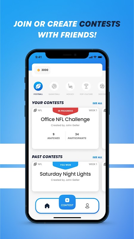 – Mach schnell mit oder erstelle lustige und einfache Tippspiele, um sie bei Live-Sportveranstaltungen, einschließlich NFL und bald auch NBA, mit Freunden, Familie und Kollegen zu teilen und zu messen.