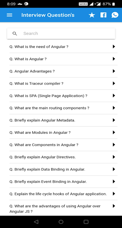 Der Inhalt dieser App ist nicht auf eine Ressource (uns) beschränkt, sondern wird unter Bezugnahme auf mehrere bezahlte und kostenlose Ressourcen erstellt, um das beste, kurze und leicht verständliche Material zu erhalten, das Ihre Zeit spart und Ihnen das vollständige Konzept bietet Details zur gleichen Zeit mit Codebeispielen sowie wir stellen Ihnen Interviewfragen für eckige 2/4/6/7/8/9 zur Verfügung.