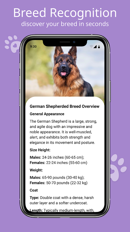 Wir umfassen viele Hunderassen und Katzenrassen. Ganz gleich, ob Sie eine reinrassige oder eine gemischte Rasse haben, unsere App kann Ihnen helfen. Unsere Rassenscanner-Funktion ist einfach zu verwenden und liefert schnelle Ergebnisse.