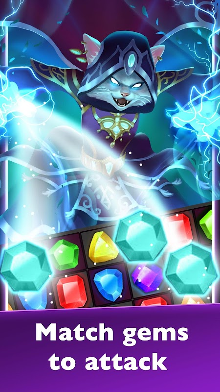 ▶ Vernichte Gegner in Echtzeitkämpfen - kombiniere Edelsteine, um anzugreifen oder magische Fähigkeiten einzusetzen