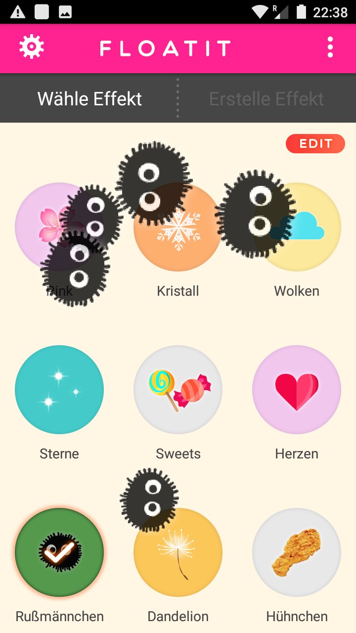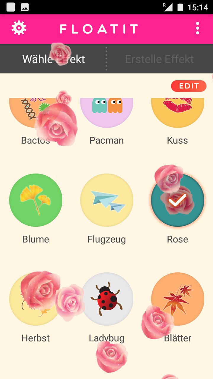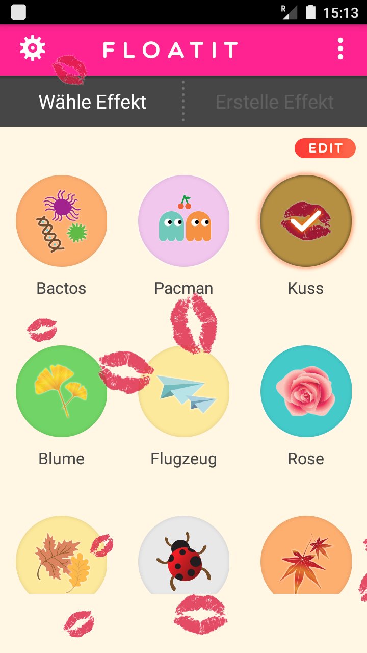 Floatit ! Die neue coole App für animierte Live Hintergründe animiert mit verschiedenen Bildern. Lasse z.B. Küsse oder Herzen über deinen Bildschirm fliegen ! Lass auch du einen schönen Handy Hintergrund als Kuss oder Herz jetzt fliegen !