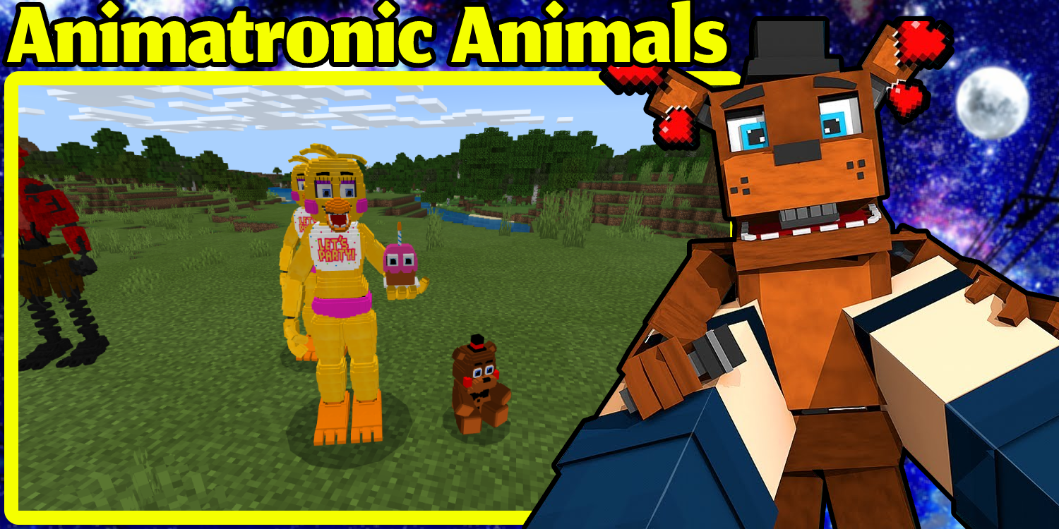 Animatronics mobs: Bonnie, Chica without a beak, JJ, Puppet, bi, ghosts, foxy and endoskeleton. There are also neutral cute teddy bear toys, but they are mostly used for home decoration and furniture. You can also scare your friends with them. Not only mobs, but also cool items from the fnaf universe will be added to the bedrock. If you go into creative mode, then you will not have enough inventory to add everything that will be added to it! Enter the game and change its difficulty to hardcore!