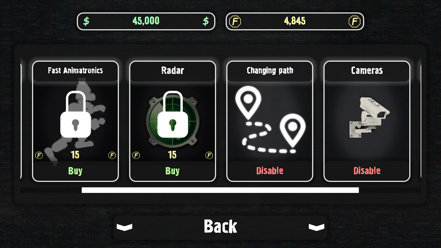Spiele als Animatronics! Erschrecke den Nachtwächter! Verdiene Spielwährung! Schalte neue Fähigkeiten und neue Animatronics frei!