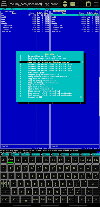 * Lokales Linux PTY wird unterstützt. Fühlen Sie sich frei, PRoot mit einigen Linux-Umgebungen zu verwenden: https://green-green-avk.github.io/AnotherTerm-docs/installing-linux-under-proot.html#main_content .
