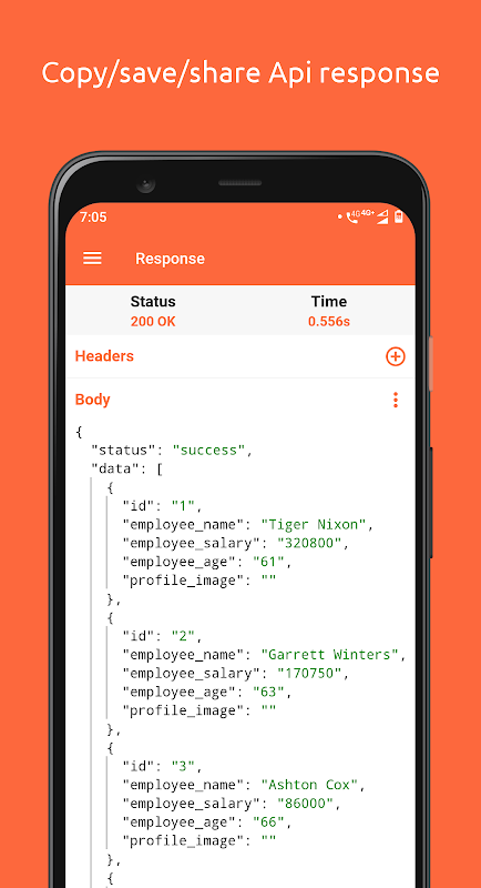 - API-Antwort kopieren/speichern/teilen/suchen.