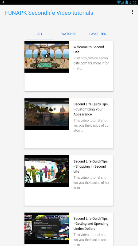 diese apk ist für Video-Tutorials aus der virtuellen Welt Second Life