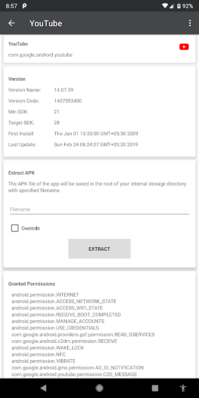 Dies ist in erster Linie für Entwickler gedacht, um app-spezifische Informationen zu erhalten und APK-Dateien von installierten Anwendungen abzurufen.
