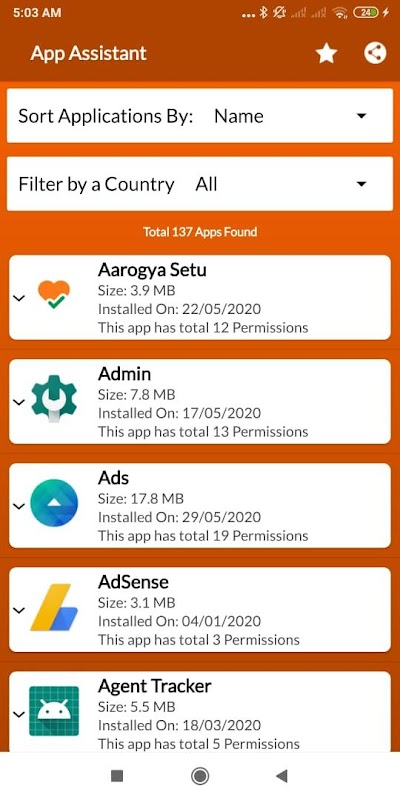 App Assistant ist ein Tool, mit dem Sie feststellen können, welche Anwendungen auf Ihrem Handy vorhanden sind. Es gibt Tausende von Apps, die über eine Vielzahl von Berechtigungen für Ihr Telefon verfügen und die Datensicherheit gefährden können. Überprüfen Sie, welche Berechtigungen von Anwendungen angefordert werden, und löschen Sie unerwünschte Apps, um die Sicherheit Ihres Telefons zu gewährleisten.