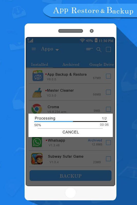 App Backup Restore - Backup your apps to SD card or RAM or cloud drive. FREE UP your device storage!