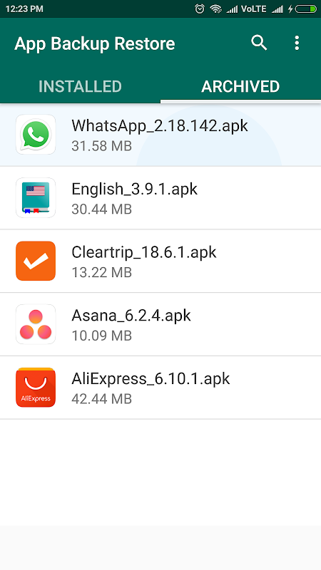 It also helps you to take the backup of version wise apps. So, if you dislike the latest version of the app, you can easily go back to old version of the app in few easy steps by restoring the app from backups.