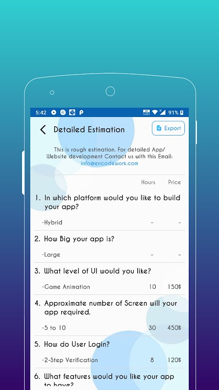 Diese App hilft Ihnen, die Kosten für die Entwicklung Ihrer Anwendung/Website abzuschätzen.