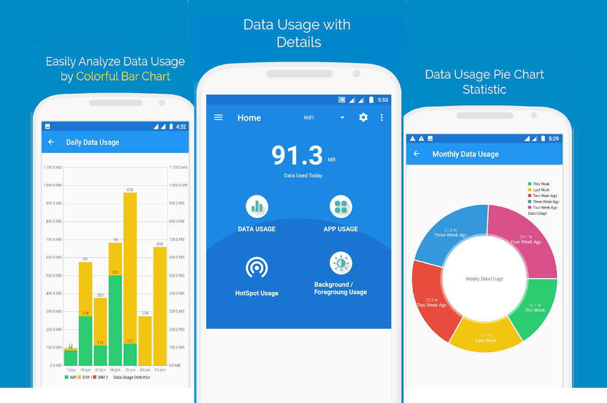 App Data Usage displays data usage per app, check hotspot usage, background and foreground App usage.