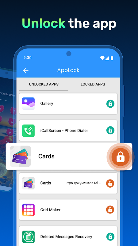 Sperrsystem -Apps wie Google Mail -Sperre, Galeriesperre, Einstellungen, Kontakt, Nachrichten, Chat -Sperre und alle anderen Telefon -Apps mit einer Touch App -Sperrenfunktion.