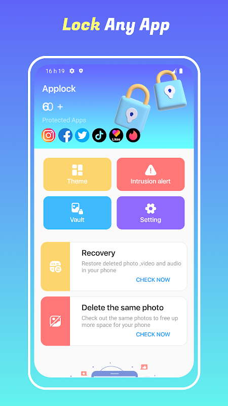 secure privacy with AppLock PRO. Fingerprint, password or pattern lock.