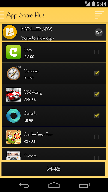 All you have to do is select apps that need to be shared and just click the "Share" button. That's it!