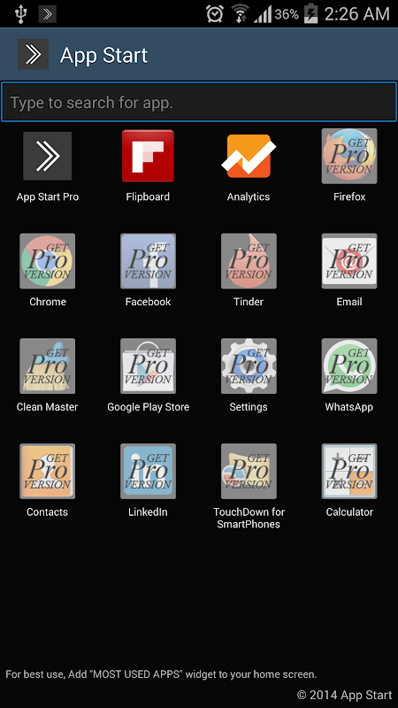 App Start will help you to reach your most used apps with a single touch using the notification bar or "MOST USED APPS" widget.