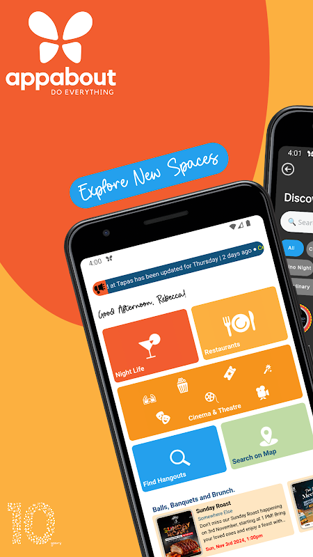 Mit AppAbout können Sie Ihre sozialen Kontakte ausleben, indem Sie alles tun können, vom Kennenlernen neuer Leute und dem Planen von Partys bis hin zum Erkunden lustiger Treffpunkte und dem Gewinnen von Preisausflügen mit Freunden.