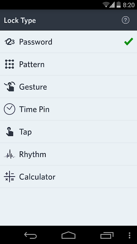 AppLock Zilla Lock Types: