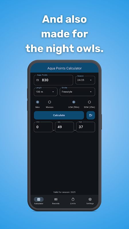 Wir stellen eine inoffizielle App vor, die Schwimmern und ihren Trainern bei der Berechnung von Aquapunkten helfen soll. Mit dieser App können Sie Punkte aus Zeiten berechnen und umgekehrt. Nach der Umbenennung des Weltschwimmverbandes von FINA in World Aquatics verwendet die App auch den neuen Namen des Punktesystems – von FINA-Punkten zu Aqua Points. Darüber hinaus verfügt die App über eine Liste aller Weltrekorde, um sicherzustellen, dass sie mit den neuesten Punktetabellen und Updates auf dem neuesten Stand bleibt, wenn neue Rekorde aufgestellt werden. Es enthält auch Qualifikationsstandards für große internationale Wettbewerbe.