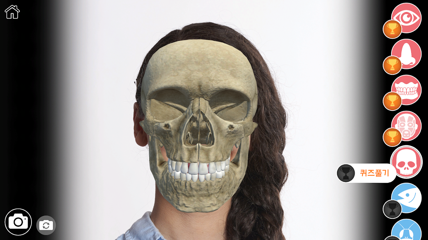 1. [Grundstufe] Augen, Nase und Mund erkennen: Durch Facetracking werden Sinnesorgane auf Ihrem Gesicht implementiert. Schauen Sie sich das wahre Aussehen der normalerweise verborgenen Sinnesorgane an und beobachten Sie die Gesichter verschiedener Kreaturen. Löse alle vorbereiteten Quizzes, um ein Arzt der Sinnesorgane zu werden.