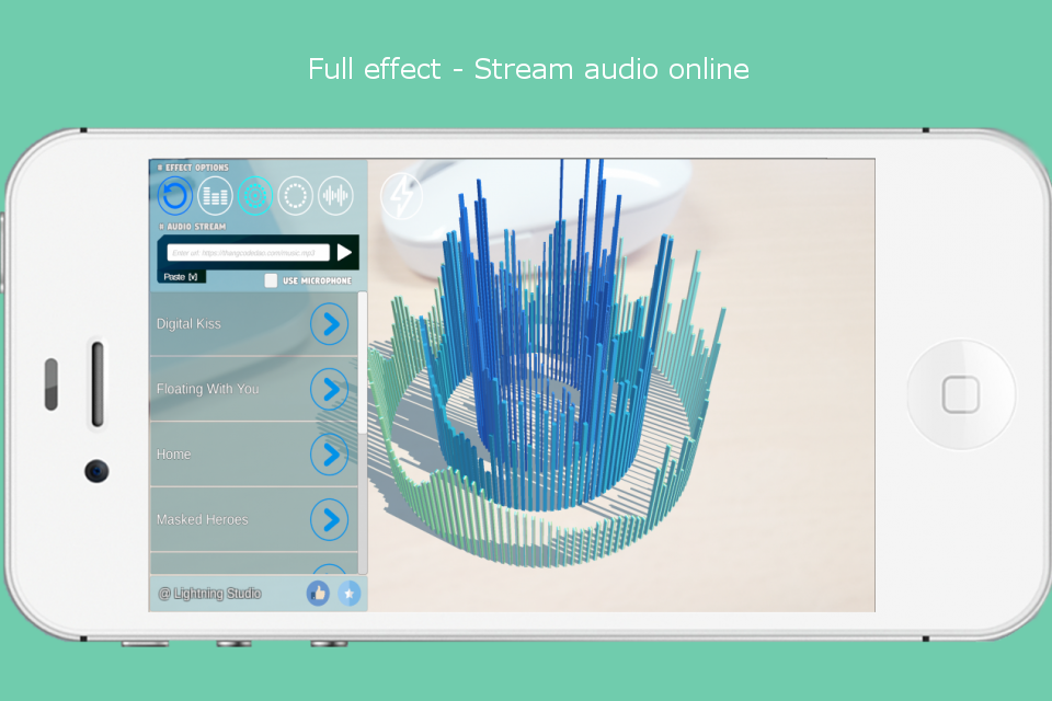 Augmented reality (AR) Audio Spectrum Analyzer View 3D with camera