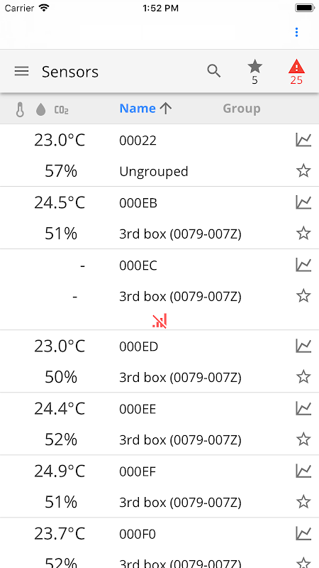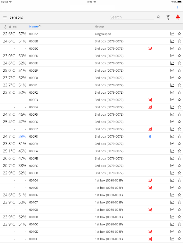 • Alarm and favorite filters for quick views of the most critical sensor readings