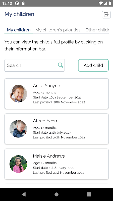 • Auf das Lerntagebuch jedes Kindes zugreifen, es teilen und es mit den Familien bearbeiten.