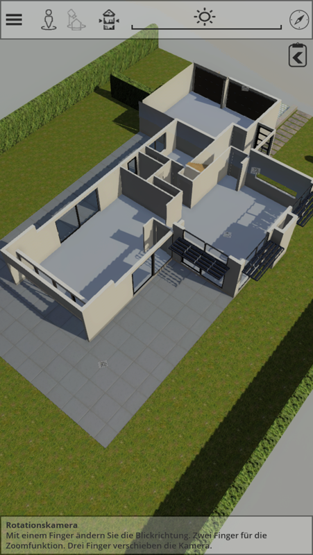 Weiterhin gibt es eine Tageslichtsimulation, die das Gebäude zu allen Tageszeiten darstellt - so kann der Licht- und Schatteneinfall stufenlos über den ganzen Tag angezeigt werden. Die Gebäudeausrichtung ist ebenfalls stufenlos möglich. Die Software läuft auf gängigen PCs und MACs im Browser sowie auf mobilen Geräten als App.