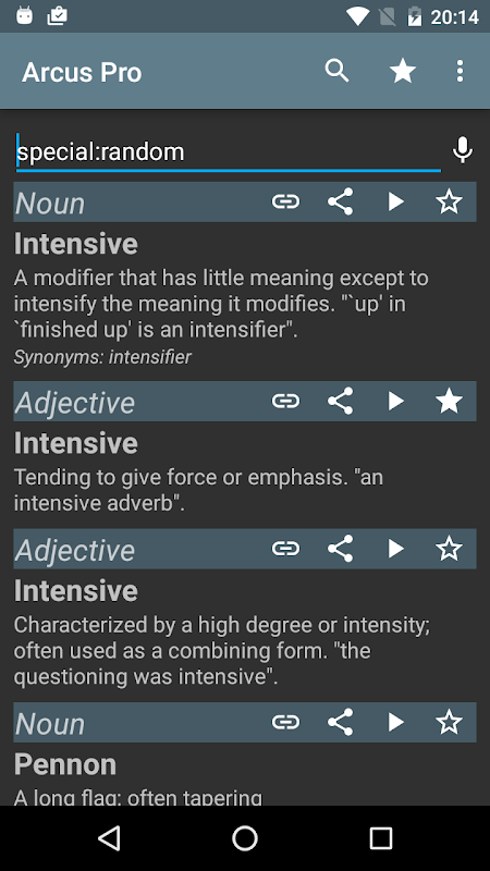 Arcus Dictionary ist ein schnelles offline englisches Wörterbuch mit mehr als 165000 Wörtern, Definitionen und Synonyme. Ein 6.2MB-Download ermöglicht den Zugriff auf alles, ohne dass nach der Installation ein Netzwerkzugriff erforderlich ist.