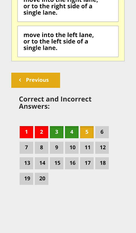 In this app Every test have 20 questions you need 17 Marks to pass.