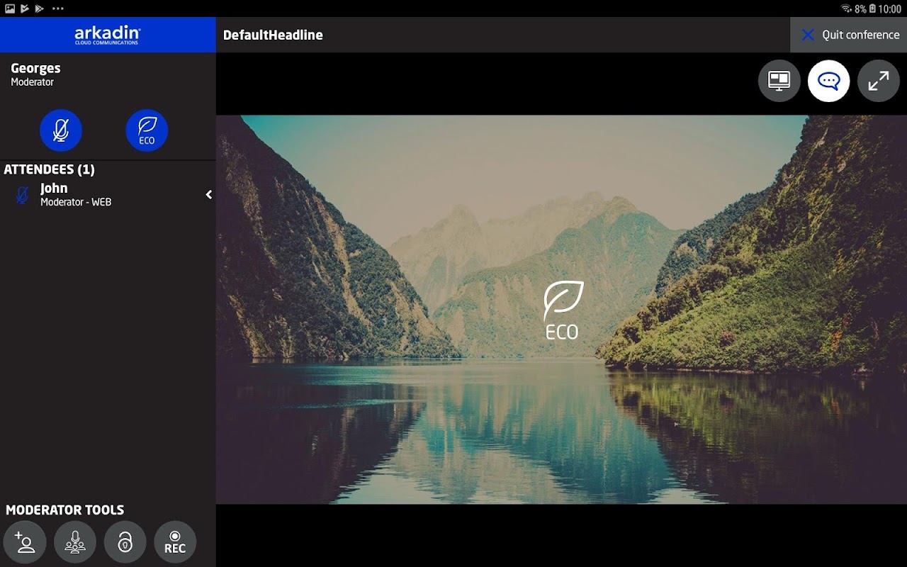 Die Arkadin App bietet Ihnen einen virtuellen Konferenzraum, der sich an Ihre Anforderungen, Ihren Tag und Ihre Verpflichtungen anpassen lässt. So können Sie schon auf dem Weg zur Arbeit mit nur einem Klick Kollegen einweisen, Präsentationen zu Quartalsberichten für die Führungsetage freigeben oder eine Videokonferenz mit Ihrem Team abhalten.