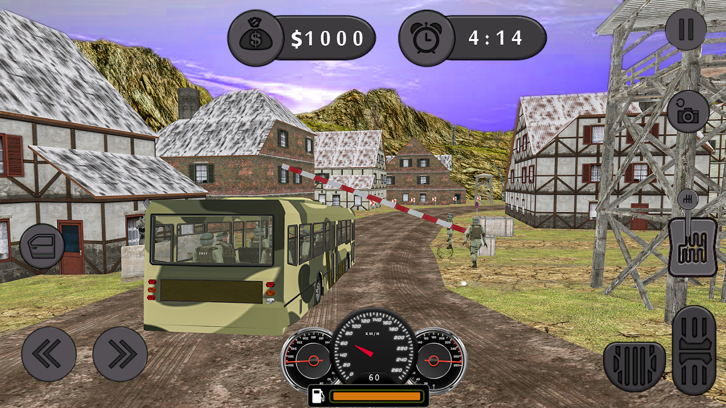 Army Bus Fahren US Solider Duty ist eine Transport-App und Post-Spiel bietet Armee Karriere, Armee Bus Pflicht und Armee Transport. Es ist Bus Sim 2017 und Hügel Bus 2017 Spiel, müssen Sie durch Armee Checkpost fahren, scharfen Geist während der Fahrt dieser unmögliche Bus auf bergauf Berg und vervollständigen Sie Ihre Bus-Pflicht. Als Armee-Mann, ist die Armee Pflicht für Sie von höchster Wichtigkeit, also beschränken Sie sich nicht nur auf den Bustransport, fahren Sie den Krieg LKW und werden Sie ein 4x4 Busfahrer. So laden Sie diese Bus Bus Sim, fahren durch Truppen Kaserne und sidetep zu einem Armee extreme Fahrer zu werden.