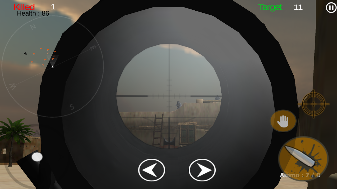 - fire button , with pick weapon button and zoom button is displayed at right bottom.