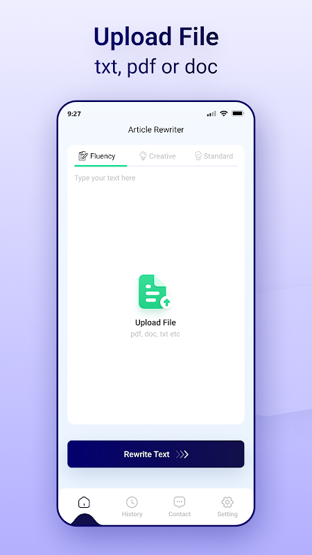 Sie können einfach Textdateien aus dem Speicher Ihres Telefons hochladen, um den Text zu drehen. Dieses Tool unterstützt mehrere Formate von Textdateien wie .txt, .docx, .doc und .pdf.