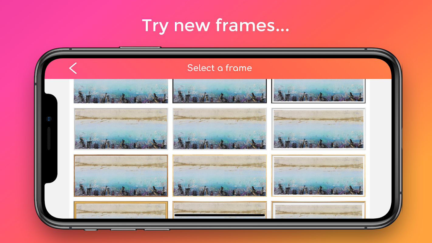 Fügen Sie Ihr Kunstwerk hinzu, wählen Sie einen Rahmen und teilen Sie Exporte in höchster Qualität.