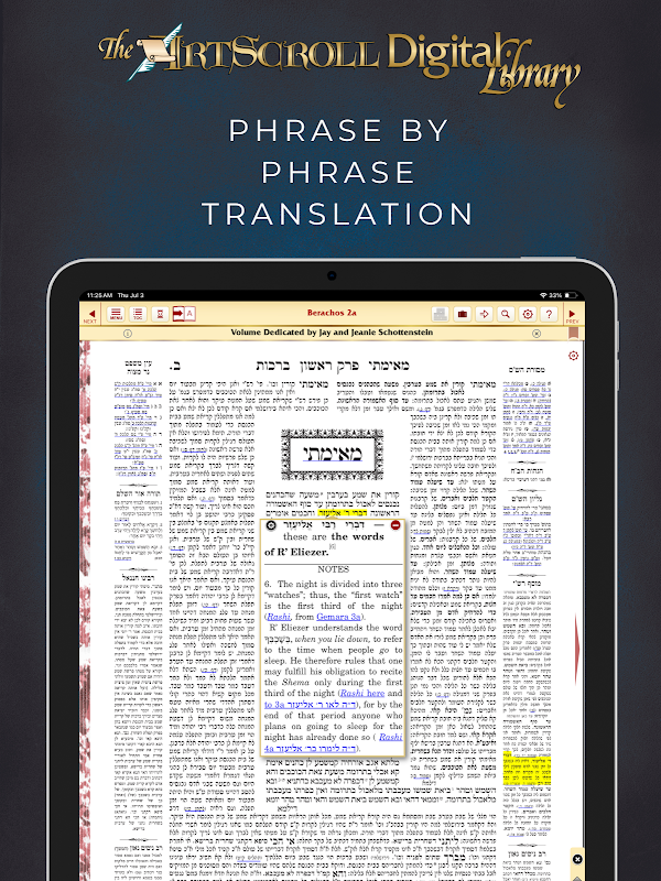 - mit der SCHOTTENSTEIN DIGITAL EDITION OF THE TALMUD in englischer Sprache und der ArtScroll Smart Siddur Wasserman Edition für Weekdays.