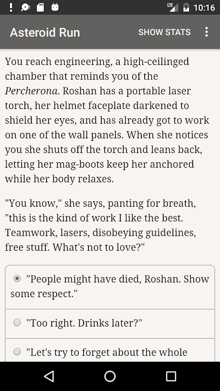 „Asteroid Run: No Questions“ Asked ist ein 325.000 Wörter langer interaktiver Science-Fiction-Roman von Fay Ikin, in dem deine Entscheidungen die Geschichte bestimmen. Er ist komplett textbasiert, ohne Grafiken oder Soundeffekte und wird von der gewaltigen, unaufhaltsamen Kraft deiner Vorstellungskraft angetrieben.