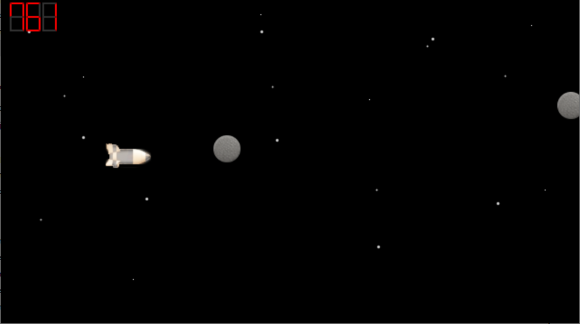 Überquere das Asteroidenfeld mit deiner Rakete. Wie weit kommst du?