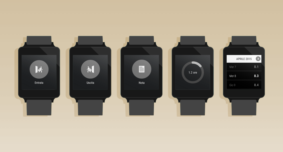 Wear Android Wear: Mit der App für Wear-Geräte können Sie auf einfache Weise Ereignisse (Eingang, Ausgang, Sprachnotiz) einfügen und Infografiken und Listen direkt vom Handgelenk aus anzeigen.