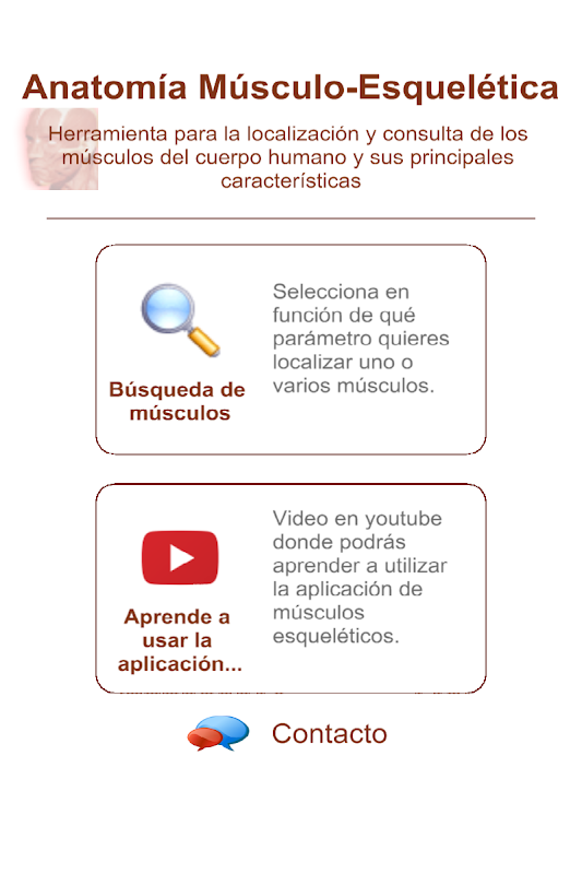 - Lupe, um das Bild zu vergrößern. Wenn gedrückt, wo das Bild des Muskels seinen Namen und die Schaltfläche "Zurück", um die Seite erweitert zurückzukehren
