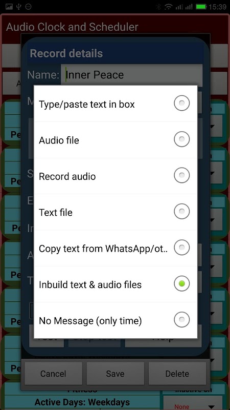 The app can be used to read out and schedule auto reading of clock time, text messages and recorded audios. Use it to schedule music, record and schedule audio messages, schedule auto reading of study material and other text messages (reminders, prayers, motivational and inspiring thoughts, difficult words/equations, rhymes, songs etc). Schedules can be defined to auto play/reading at specific interval during specific period on specific days of a week.