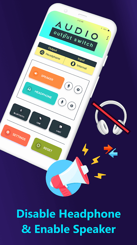 Für diejenigen, die Probleme mit dem Kopfhöreranschluss haben, ist die Audio-Output-Switch-App unglaublich hilfreich. Wenn es klemmt, ist es einfach, die Audioausgabe auf Lautsprecher und Kopfhörer umzuschalten. Dies ist der ideale Weg, um Probleme mit der Kopfhörer-, Headset- oder Ohrhörerbuchse zu beheben.