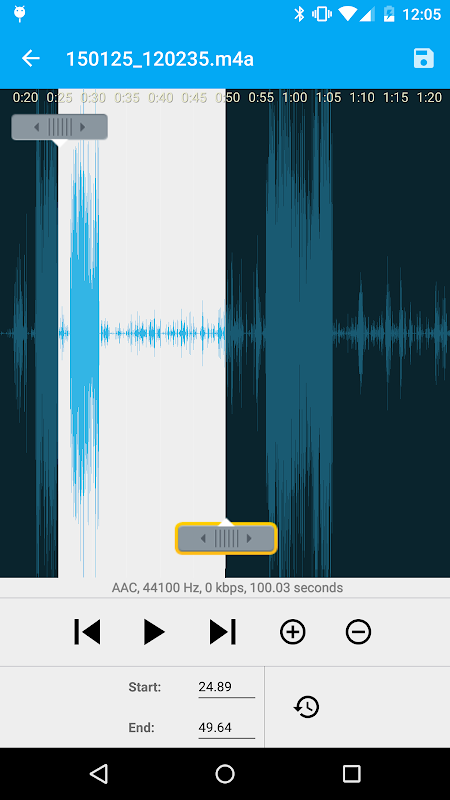 Advanced Audio Recorder (aka Audio Recorder und Editor) erfasst und bearbeitet hochwertigen Audiodatei. Es ist das einzige Recorder auf Android, die Sie während der Aufnahme zurückspulen kann. Es erlaubt Ihnen auch zu verschmelzen, trimmen, und Audio-Dateien konvertieren, zwei Audio-Dateien mischen, Verstärkung oder Aufnahme-Lautstärke verringern, Echo hinzufügen, Anpassung Tonhöhe und Geschwindigkeit.