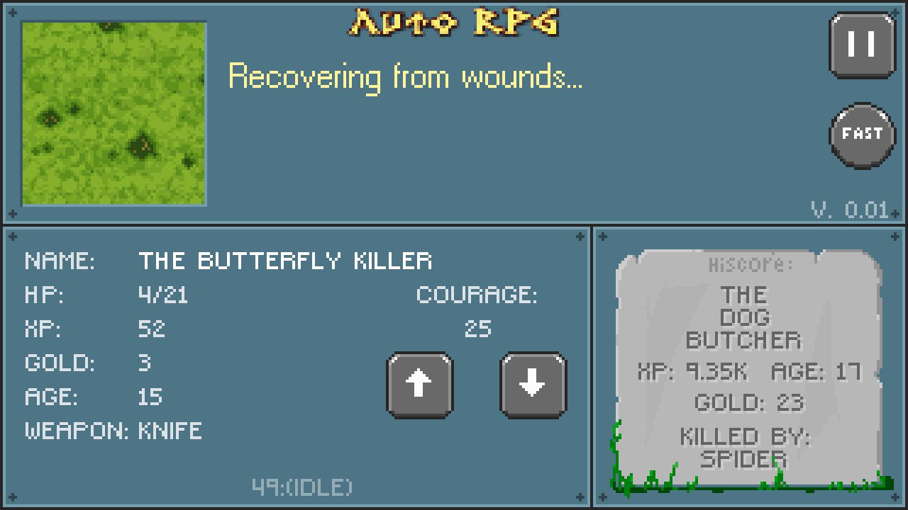 Auto RGP is very easy to play. Most of the game is handled automatically. You can tweak your character a bit and use "The Finger of GOD" to engage in battles.