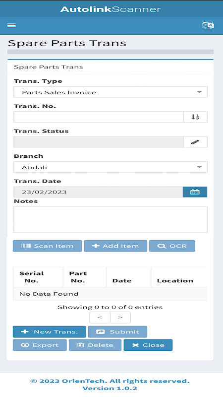 Bereitstellung eines Scanprozesses für Autoteile und Fahrgestellcodes zur Bestandsprüfung