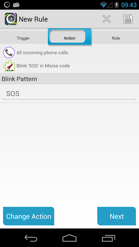 Dieses Plugin fügt gewidmet Aktionen AutomateIT Ihre Taschenlampe steuern - schalten Sie ihn ein / aus, oder machen es in einem definierten Muster (mit Morse-Code http://en.wikipedia.org/wiki/Morse_code) blinken.