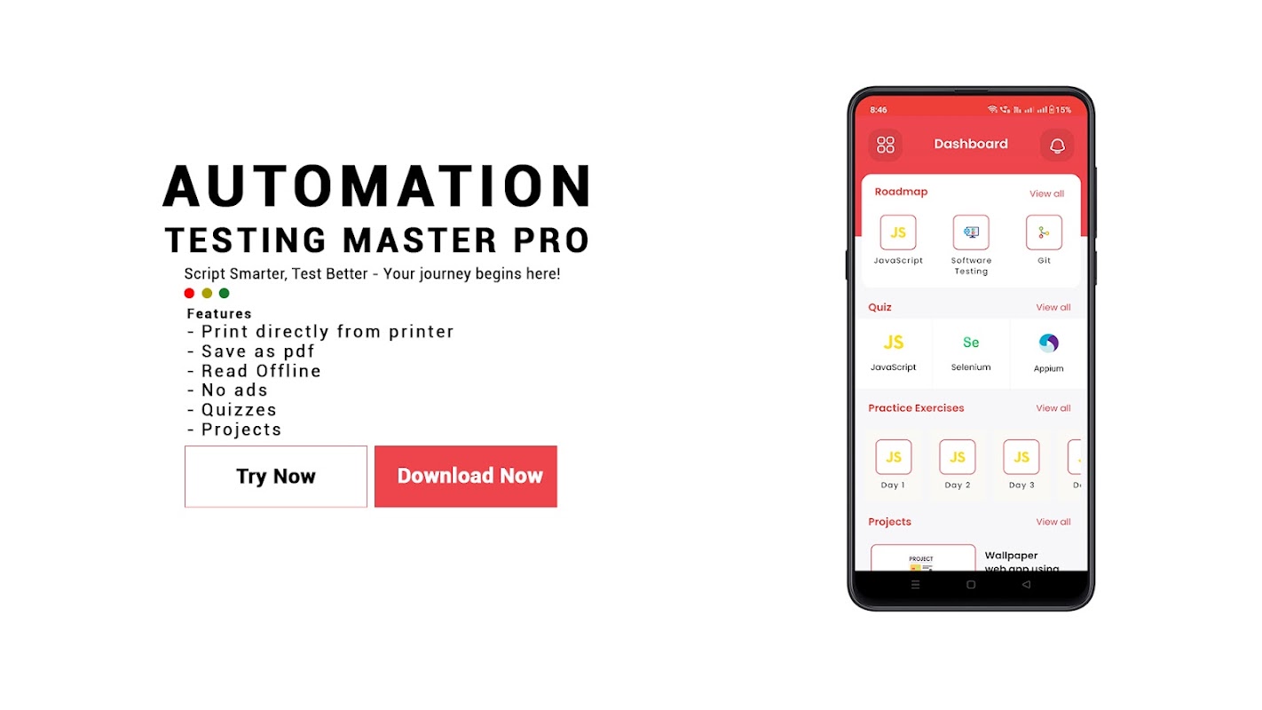 Willkommen bei unserer Lern-App „Automation Testing Master Pro“, die speziell für Anfänger entwickelt wurde, die ihre Reise in das Automatisierungstesten ankurbeln möchten. Unabhängig davon, ob Sie Ihre Fähigkeiten verbessern, bietet diese App ein umfassendes und praktisches Lernerlebnis.