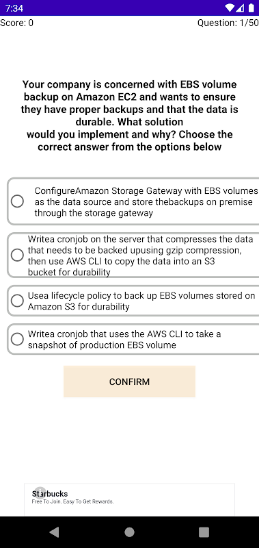 (Haftungsausschluss: Diese App ist nicht mit Amazon Web Services (AWS) oder der Zertifizierungsprüfung AWS Developer – Associate (DOP-C02) verbunden. Sie dient als ergänzendes Tool zur Prüfungsvorbereitung und der Erfolg in der eigentlichen Prüfung hängt von den individuellen Lernanstrengungen ab und Wissen.)