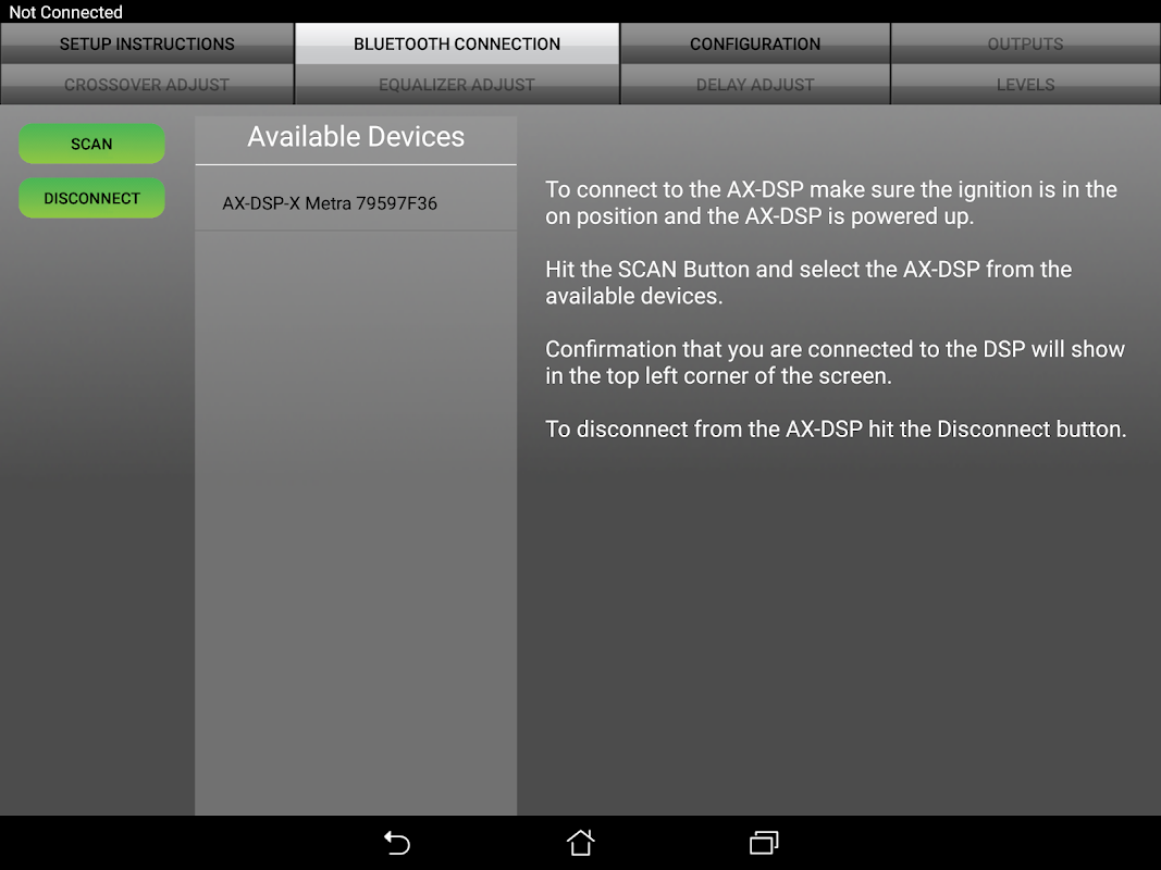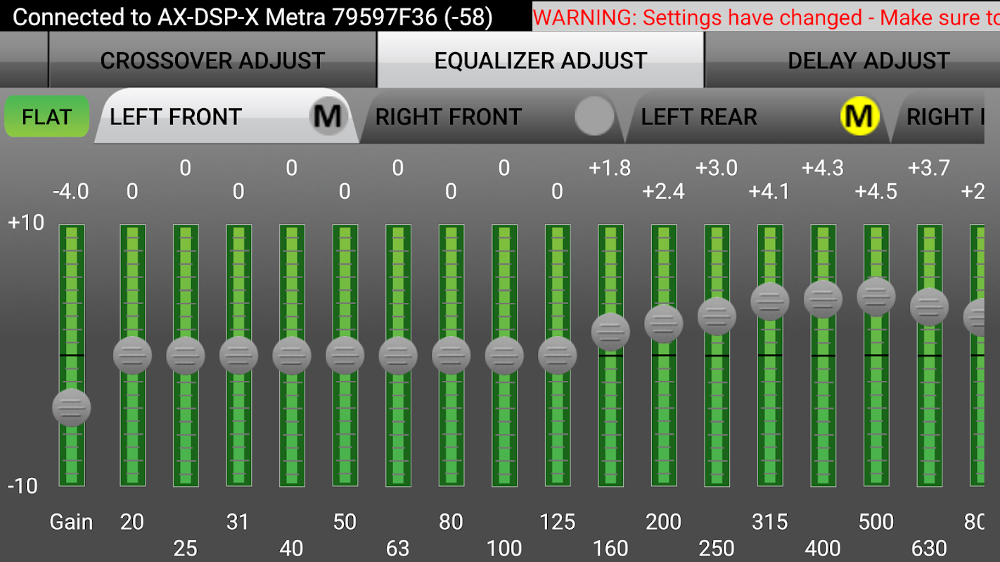 The AX-DSP-X App allows you to quickly and easily configure all of the AX-DSP-X's parameters via the Bluetooth interface on your phone or tablet. Its intuitive interface provides controls for: